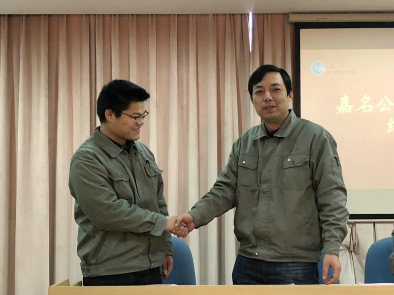 1月26日,公司舉行師徒結(jié)對(duì)儀式,公司領(lǐng)導(dǎo)、各部門負(fù)責(zé)人和結(jié)對(duì)師傅徒弟參加。儀式由公司黨建指導(dǎo)員吳紀(jì)聯(lián)主持,首先人力資源部經(jīng)理戚遠(yuǎn)航宣布了師徒結(jié)對(duì)名單和宣讀師徒結(jié)對(duì)協(xié)議書,9位師傅與15位徒弟在《師徒結(jié)對(duì)協(xié)議書》上簽了名,然后師傅代表、總工程師、染整事業(yè)部廠長(zhǎng)施道妃,徒弟代表、技術(shù)中心舒越浩先后發(fā)言,最后公司莫總講了話。